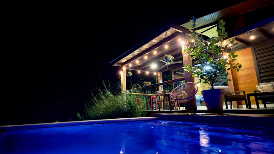 enjoy a range of amenities designed for your comfort, including a fully equipped kitchen, spacious living areas, and a stunning infinity pool and outdoor terrace with views across the valley to the jungle canopy
